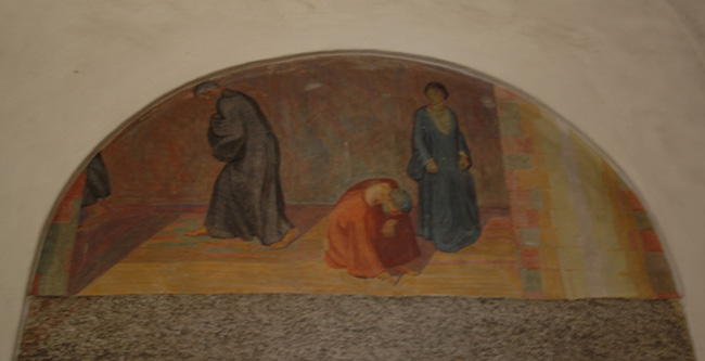 Da syddøren i kirken blev flyttet i 1922, blev den udvendigt udsmykket med et relief af kendte maler Joakim Skovgaard over fyldningen, indvendig er tympanonfeltets fresco udført af Niels Larsen Stevns. Joakim Skovgaard (1856-1933), billedkunstner, søn af P.C. Skovgaard, var en dansk billedkunstner, maler, billedhugger og kunsthåndværker, og stod blandt andet bag de fantastiske fresko-malerierne i Viborg Domkirke. |