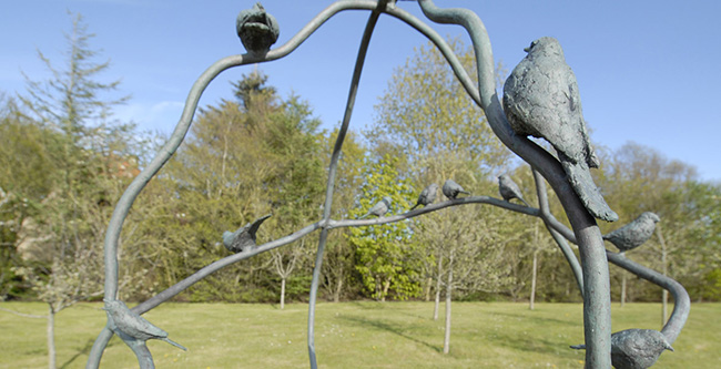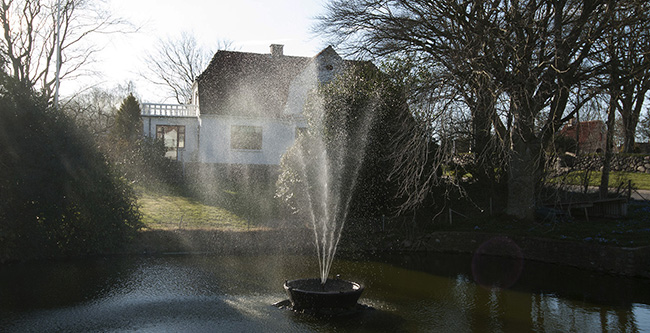 opsat en skulptur af forfatteren i baghaven, udført af kunstneren Bodil Dam. |