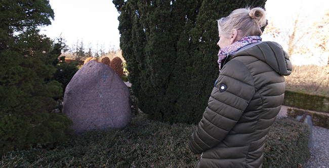 Fra kirkegården er der en formidabel udsigt til vandreklitterne ved Rubjerg Knude. Her kan du også høre en historie ved at ringe til nummeret på audiopælen lige inden for hovedlågen.