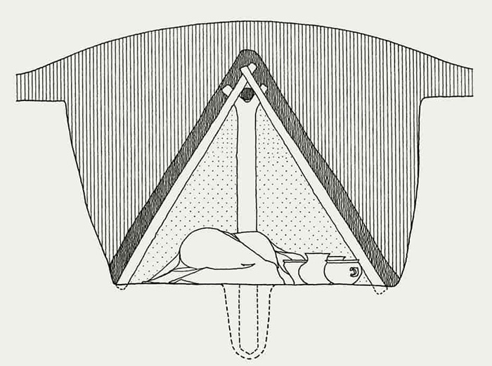 Besøger vi en af de store stengrave, ser vi, at gravkammeret er dannet af nogle meget svære kampesten, som vender den flade side indad. Oven på dem ligger en række sten på tværs. Indefter rager deres ender ud så meget som muligt, således at gravrummet foroven indsnævres tilstrækkeligt til, at man kan overspænde det med to store dæksten. Nogle af gravkamrene er forholdsvis snævre, andre er meget vide og rummelige. De kan være dækket af en lav høj, men er dog ofte lagt under flad mark. I hvert fald de større af de stenbyggede grave kan have været bestemt for to eller flere personer |