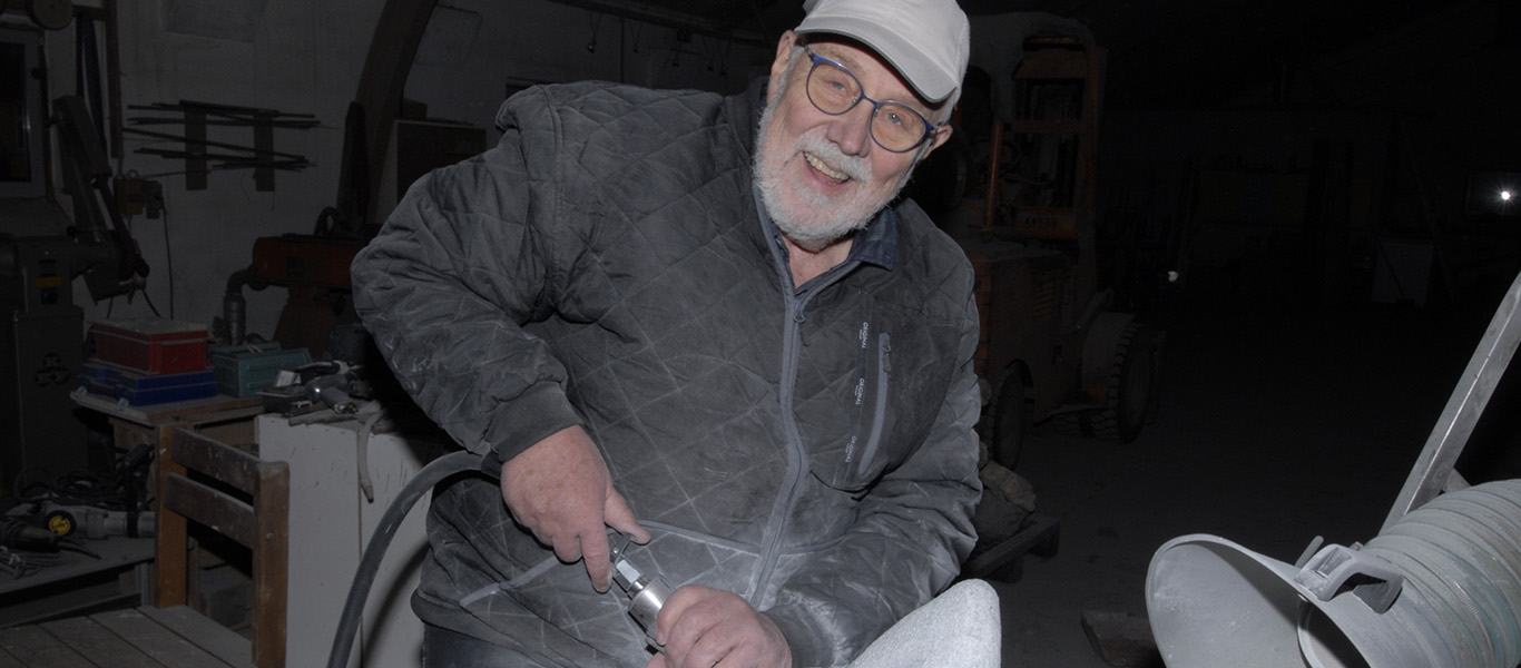 Flemming Holm, født på Fyn 1948, er uddannet folkeskolelærer men er selvlært som billedhugger. Han arbejder i sten og bronze - af og til - i en sammenstilling af de to materialer.