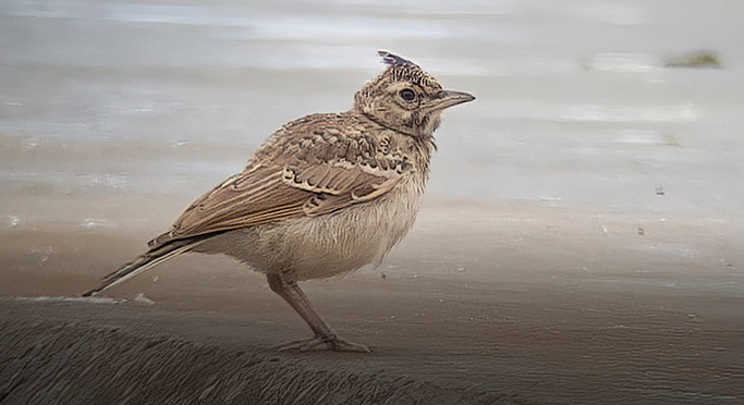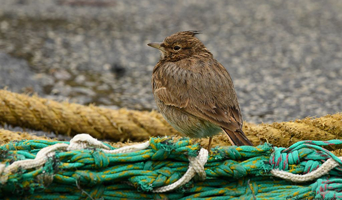 Umiddelbart ligner toplærken den almindelige sanglærke, men ved nærmere eftersyn er der klare forskelle, ligesom sangen hos de to arter er forskellig. Først og fremmest kan man kende toplærken på, at dens top er større end sanglærkens. Desuden er toplærken klædt i mere grålige nuancer end sanglærken og har et længere og spidsere næb. Den er en lille smule større end sanglærken. |